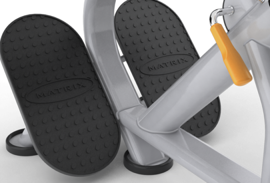 Foot rests incorporate lower-leg pads for stabilization and comfort